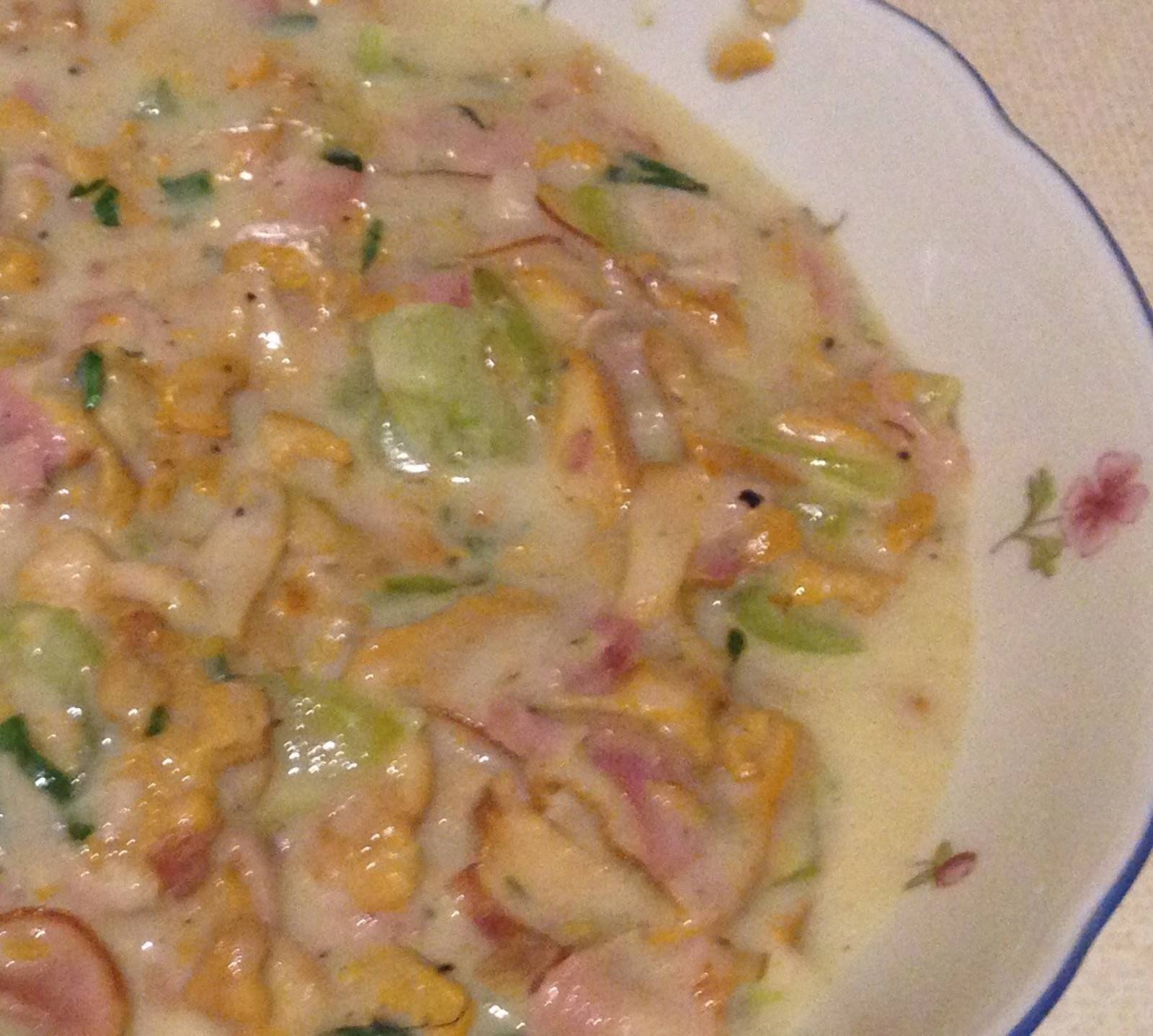 Nudel-Gemüse-Salat mit Joghurt-Dressing und Putenschinken-Streifen