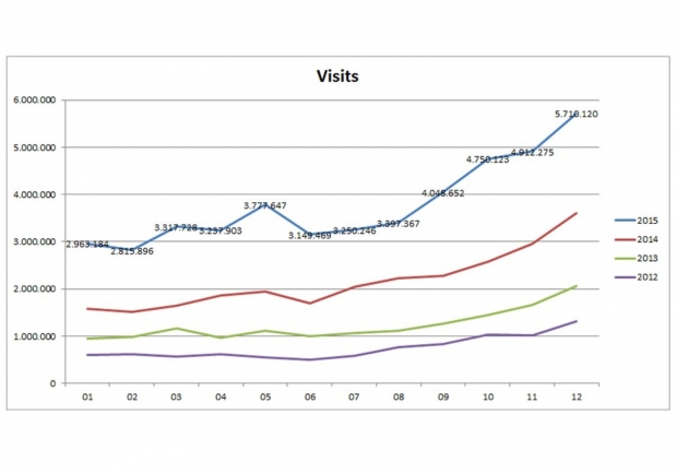Eine Rückschau auf die offiziellen ÖWA Leistungsdaten des Gesamtjahres 2015 - Visits, Page Impressions und Unique Clients in Tausend.