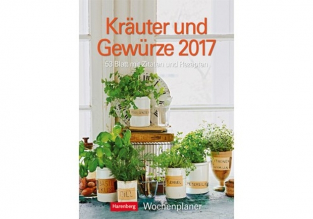 HarenbergDer Wochenplaner "Kräuter und Gewürze 2017" von Harenberg enthält 53 Fotografien von Kräutern und Gewürzarrangements - von Anis bis Zimt - mit passenden Rezepten auf der Rückseite. Zudem erfährt man Wissenswertes über die Heilwirkung, den Anbau und die Verwendung verschiedener Kräuter und Gewürze. Mit viel Raum für Termine und Notizen ist dieser Kalender nicht nur ein toller Blickfang in Ihrer Küche, sondern auch äußerst praktisch!