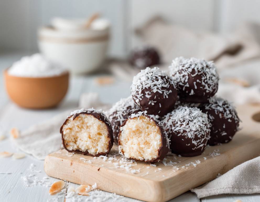 Essen keine Kinder mit, können Sie die Masse für die Kokoskugeln mit etwas Kokoslikör aromatisieren.
