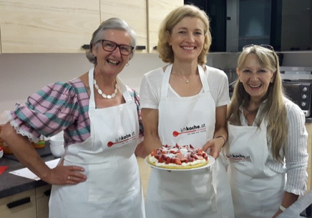 Beim Anblick der frischen Erdbeeren schwelgen wir mit Leopoldine kurzfristig in Erinnerungen: "Als Kind, da haben wir einen kleinen Garten gehabt – und was der Garten geboten hat, ist gekocht worden!" Darob gerät auch Martina Salomon ins Schwärmen vom eigenen, kleinen Gartenglück: "Ich hab auch einen Garten. Mein Mann ist ein fleißiger Anbauer und Ernter – und ich verarbeit's dann. Und ich finde, DAS ist der wahre Luxus!"
