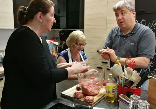 Das Wichtigste zu Beginn: saubere Gläser! Und so begann das neu formierte und motivierte Einkoch-Team zunächst mit dem richtigen Spülen und Sterilisieren der Gläser. Dann ging es auch schon ans „Eingemachte“. Auf der kulinarischen Agenda: Marillenmarmelade mit Amaretto und Fleischbällchen im Glas. „Fleischbällchen? Das geht?“ hieß es da nicht nur einmal verwundert. Und wie das geht! Das musste natürlich sogleich unter Beweis gestellt werden: nach dem gemeinsamen Zwiebelschneiden, Fleischbällchen formen und Anbraten durften die „Kleinen“ auch schon ins Glas und schließlich in den Backofen wandern.