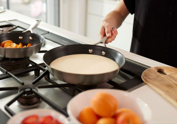 An alle Puristen und Gusseisenliebhaber: Olavson bietet auch Kupferkernpfannen ohne Beschichtung an. Die Pfannenoberfläche besteht dann aus vorteilhaftem Edelstahl:
