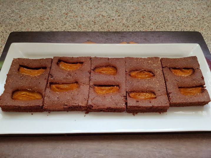 Mit gehackten Mandeln wird der Schokolade-Marillenkuchen noch köstlicher. Anstatt mit Marillen passt das Rezept auch mit anderen Obstsorten wunderbar.