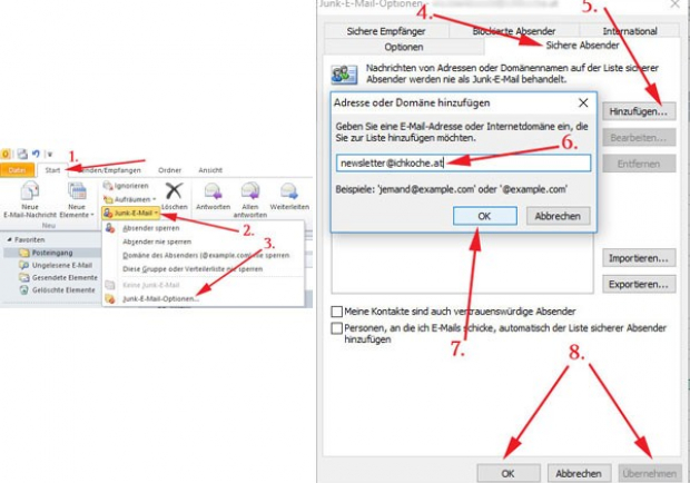 ichkoche.atAbsender auf die Liste sicherer Absender hinzufügen