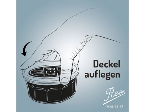 RexBei den Rundrandgläsern wird der Ring am Deckel angelegt, idealerweise schon vorab und im heißen Wasser bereithaltend, bis man sie auf das Glas legt. Beim Verschließen kann weder der Ring auf dem Deckel, noch der Deckel auf dem Glas verschieben - Fehlverschluss praktisch unmöglich.