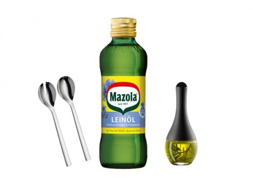 Jetzt mitmachen und gewinnen: Was wollen Sie schon immer zum Thema Leinöl wissen? Schreiben Sie Ihre Frage in die Kommentare und gewinnen Sie eines von drei hochwertigen Salat-Dressing-Sets von WMF und Mazola.