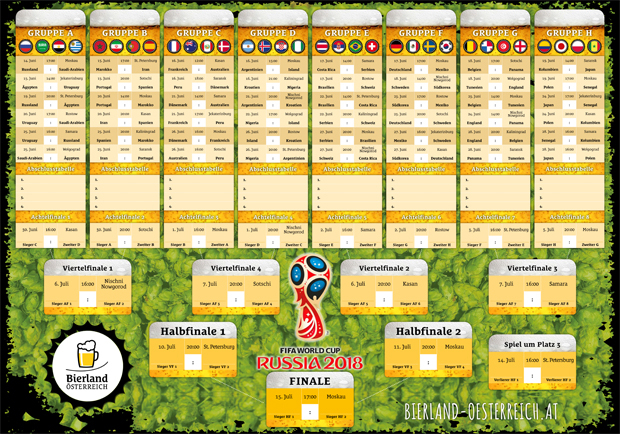 Der passende Spielplan für die Weltmeisterschaft 2018 in Russland steht für Sie unter